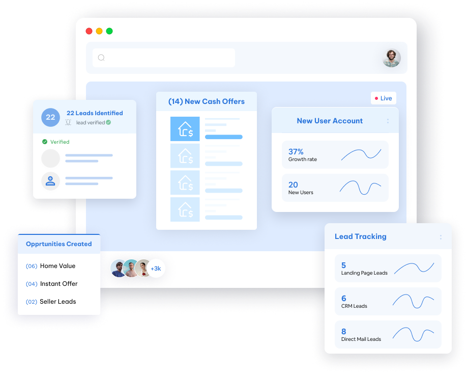 Access powerful Cash Offer and Home Value tools—built into landing pages, email automation, and direct mail—fully integrated with your CRM to generate more opportunities.